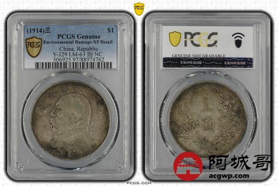 Lot:37 原味老包浆 三年大头壹圆 PCGS XF
