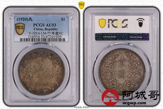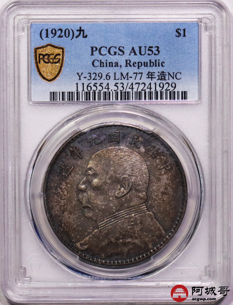 Lot:8 原味酱彩 九年中发壹圆 PCGS AU53