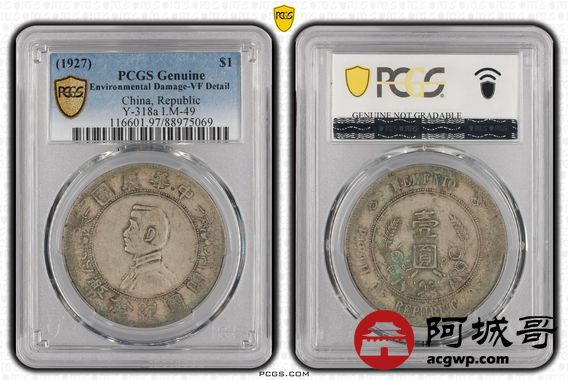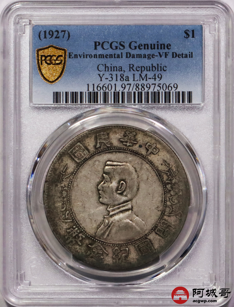 Lot:1 原味 窖藏 孙像小头壹圆 PCGS VF