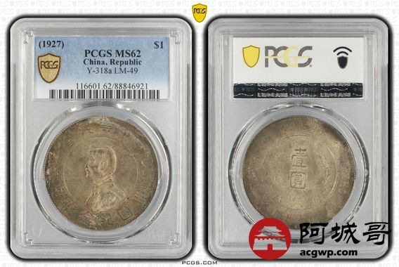 Lot:10 五彩原光 孙像小头壹圆 PCGS MS62