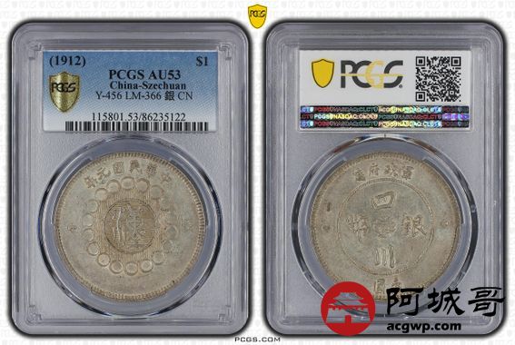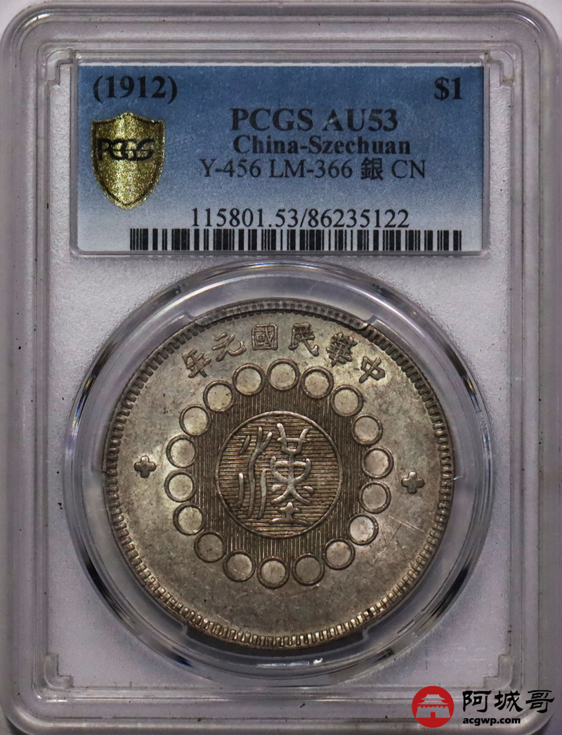 Lot:12 黄油光 四川军政府壹圆 PCGS AU53
