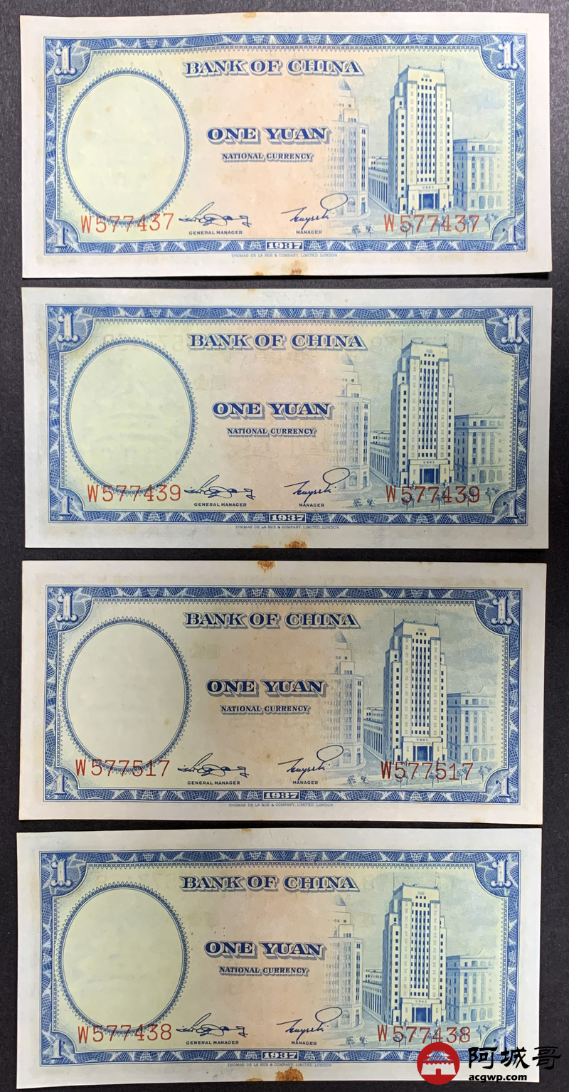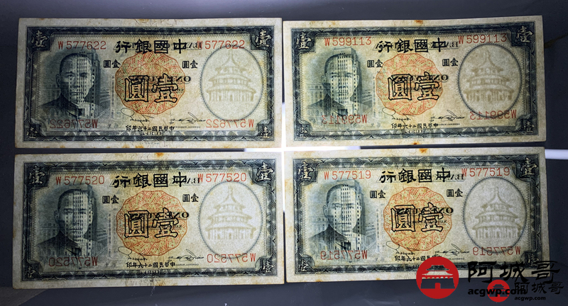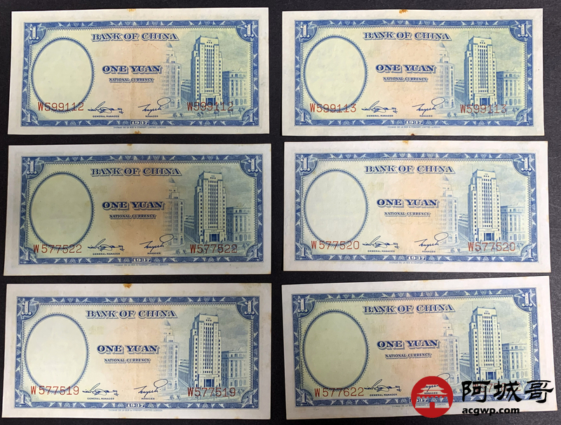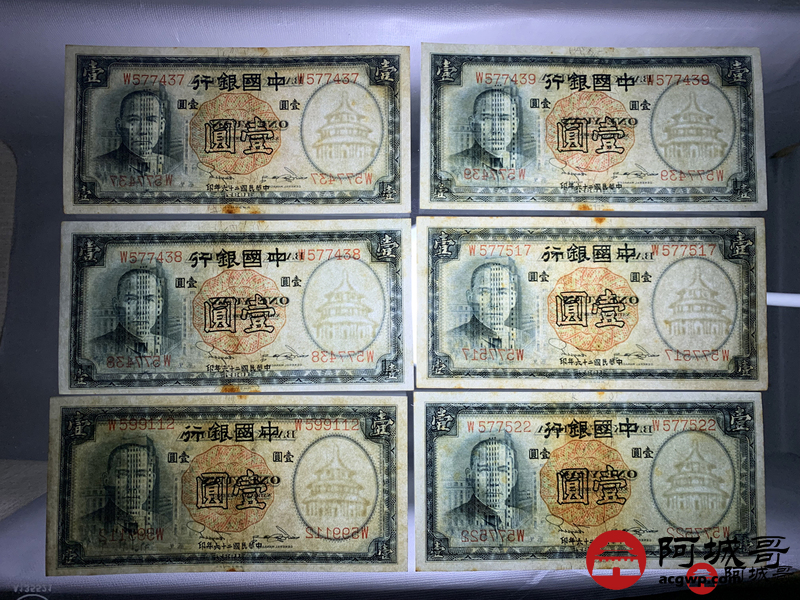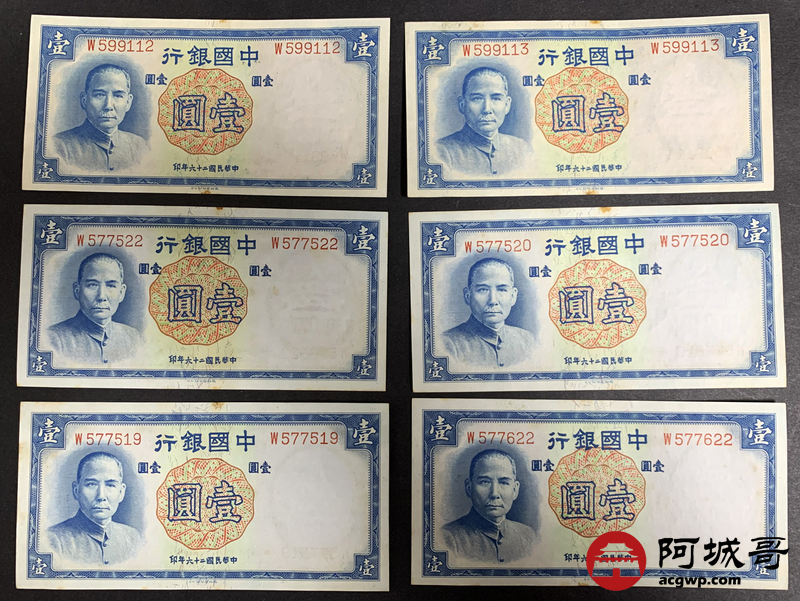 Lot:39 民国二十六年 中国银行壹圆 10张 板子硬8至85成新