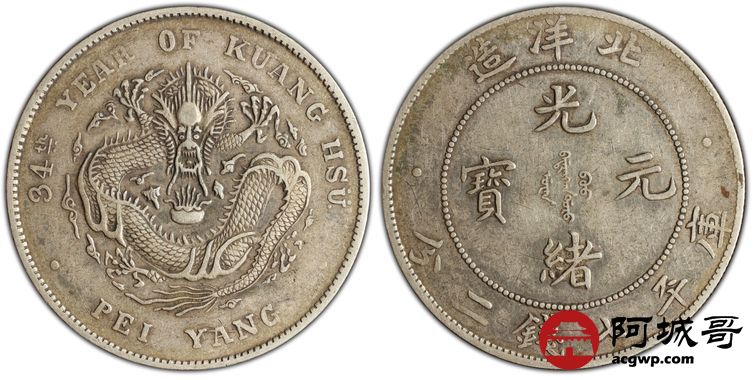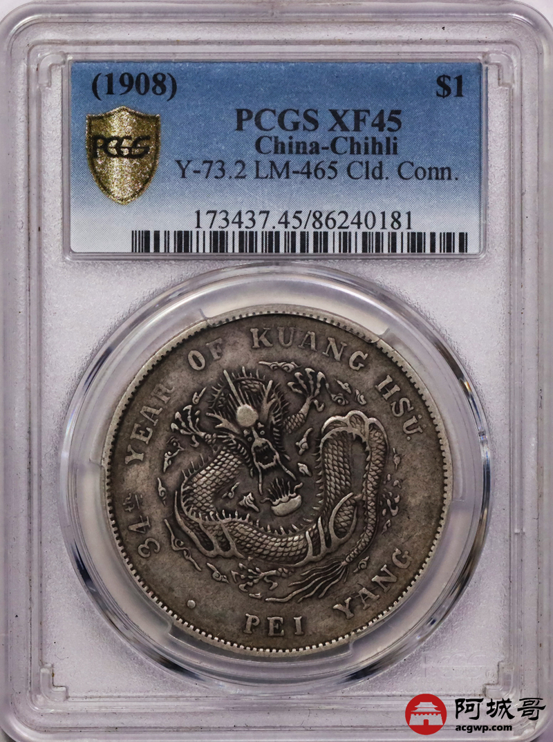 Lot:10 原味老包浆 北洋34七钱二分 PCGS XF45