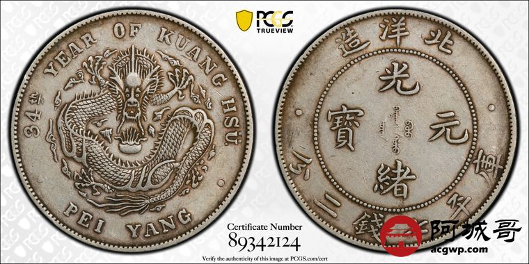 Lot:11 原味深打老包浆 北洋34七钱二分 PCGS XF45