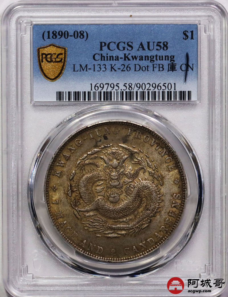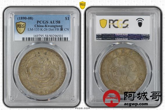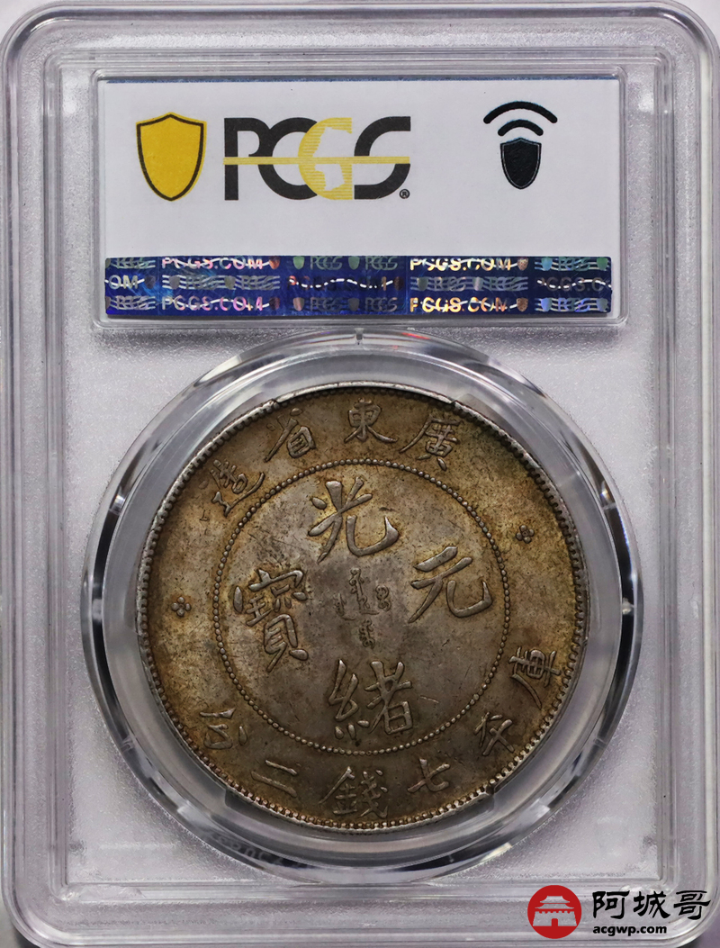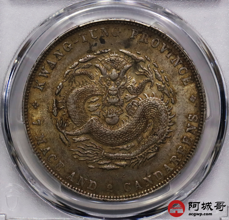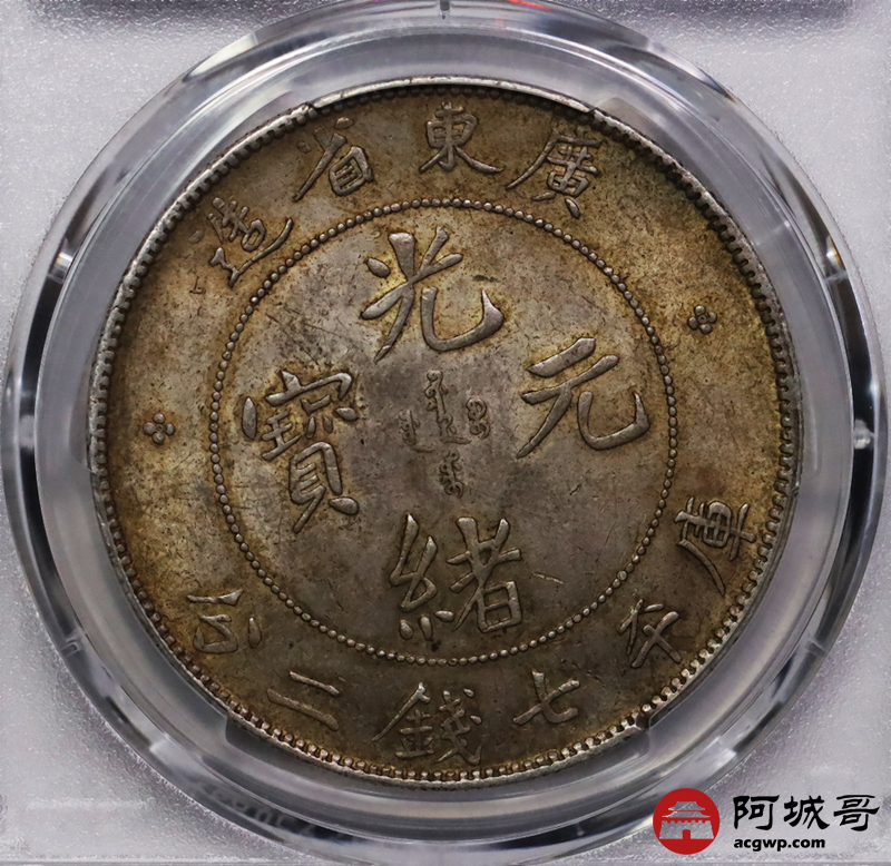 Lot:13 原味 黄油转光 广东光绪七钱二分 PCGS AU58盒小磕