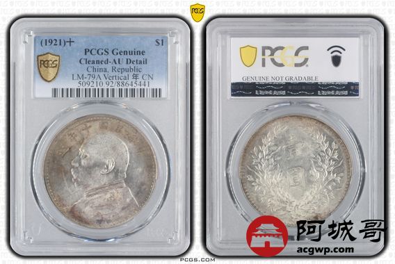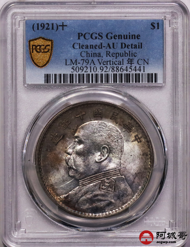 Lot:35 转光 十年大头壹圆 竖点年PCGS AU