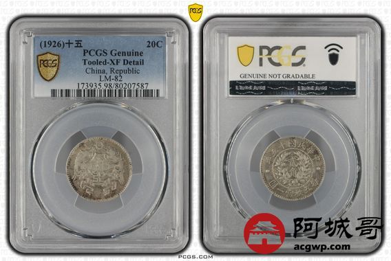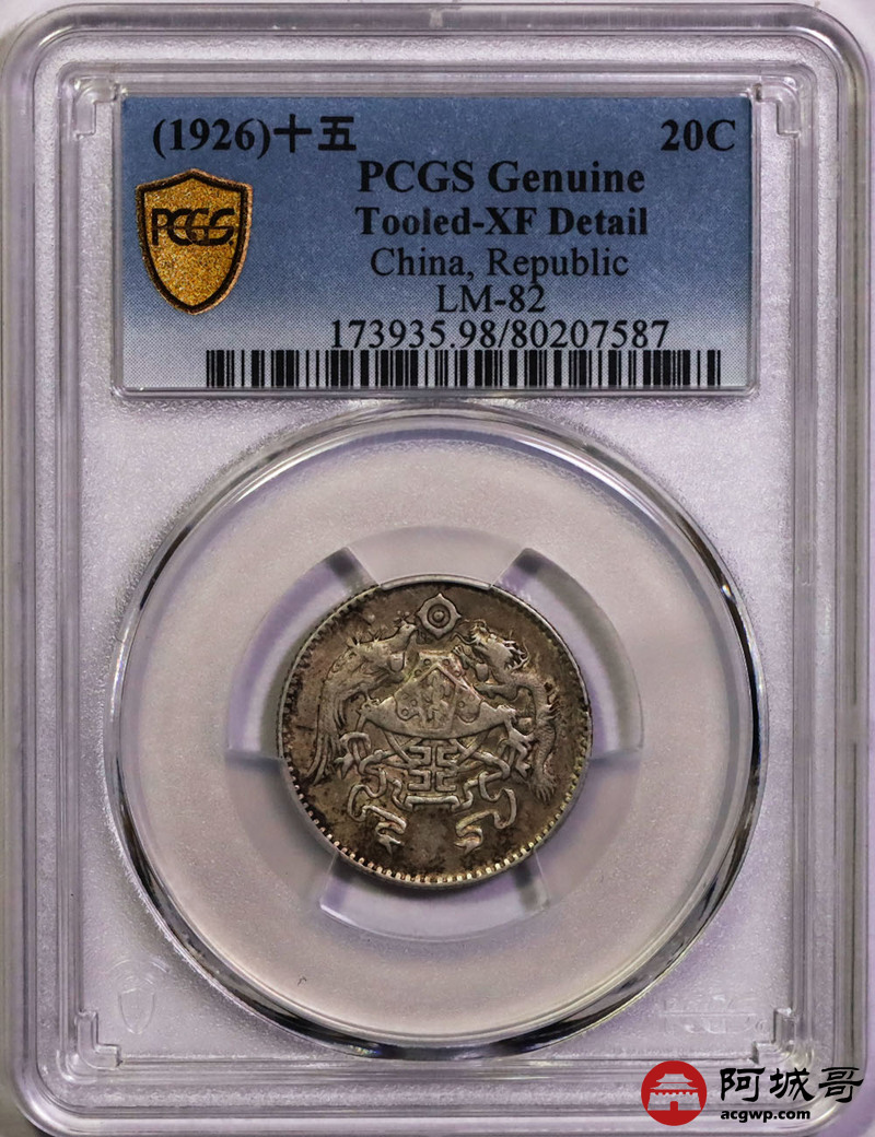 Lot:33 原味 包浆 龙凤贰角 PCGS XF
