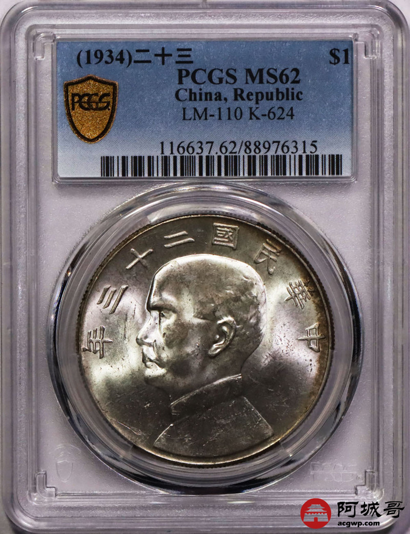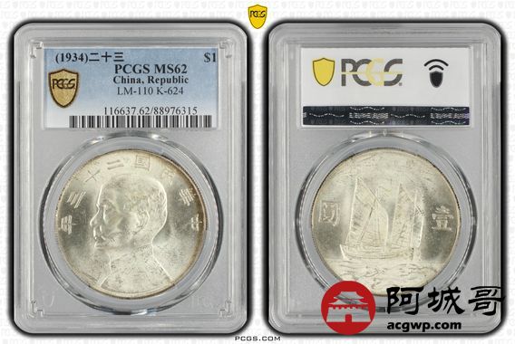 Lot:31 黄油原光 二十三年船洋 PCGS MS62