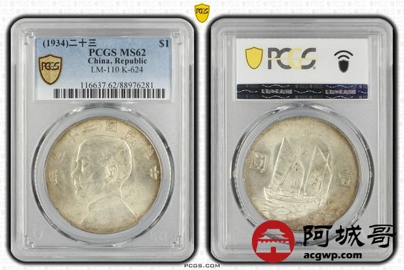 Lot:32 黄油原光 二十三年船洋 PCGS MS62