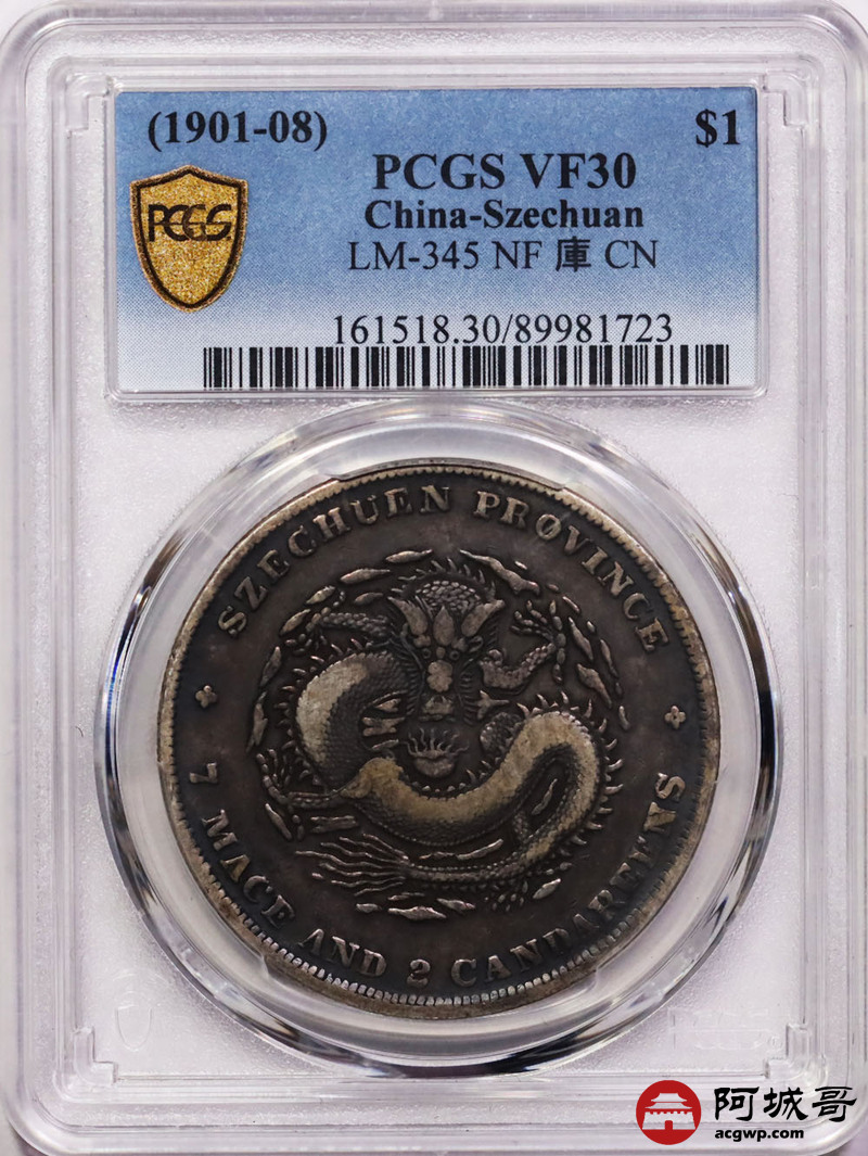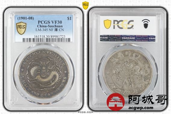 Lot:15 原味酱彩 四川光绪七钱二分 PCGS VF30