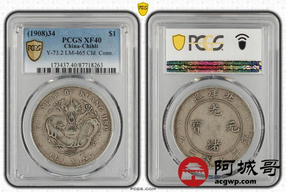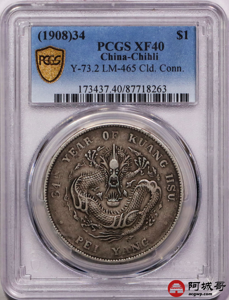 Lot:21 原味 包浆 北洋34年七钱二分 PCGS XF40