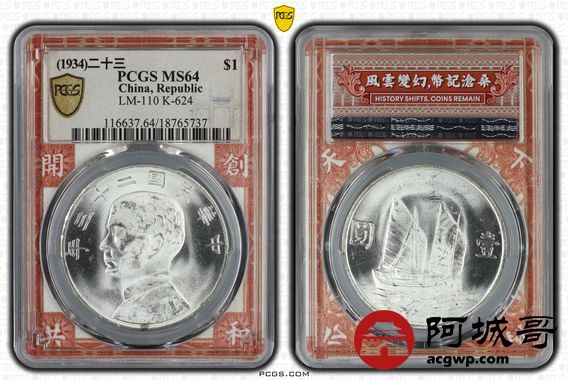 Lot:28 车轮转光 二十三年船洋 PCGS MS64
