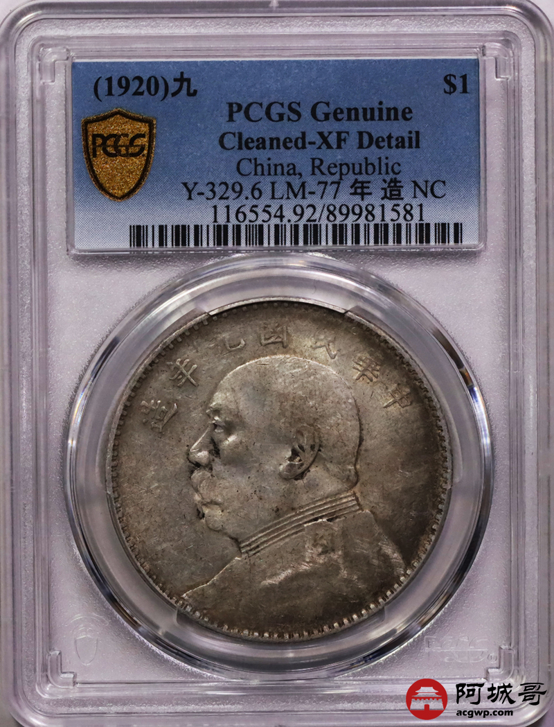 Lot:6 原味 九年中发壹圆 PCGS XF