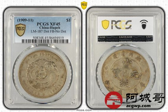 Lot:15 原味老包浆 湖北宣统七钱二分PCGS XF45