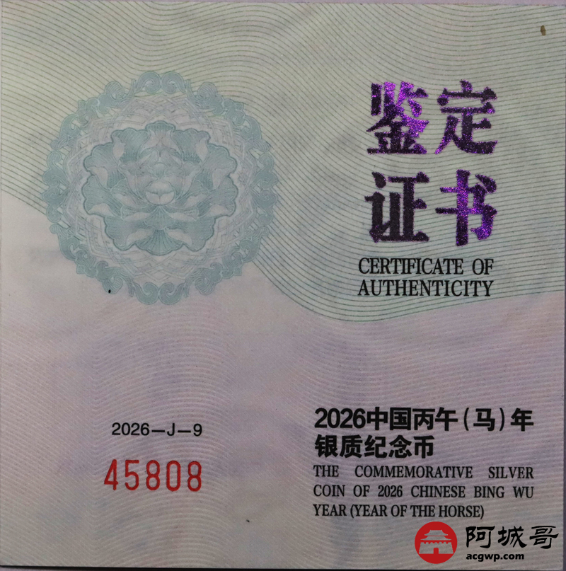 Lot:36 2026年马年彩色30克银币PCGS PR70DCAM原盒带证