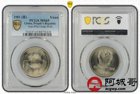 Lot:43 1981年黄油原光 长城币壹圆 PCGS MS65