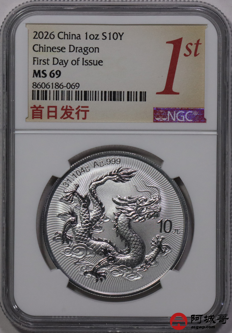 Lot:28 2026年中国龙银币 NGC MS69首日倒置号