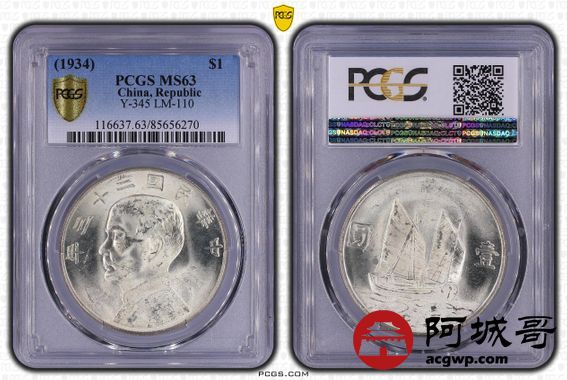 Lot:23 原色光 二十三年船洋壹圆 PCGS MS63