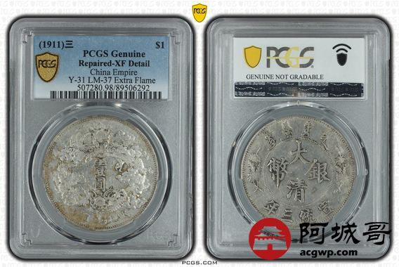 Lot:26 原味 大清宣三壹圆 PCGS XF