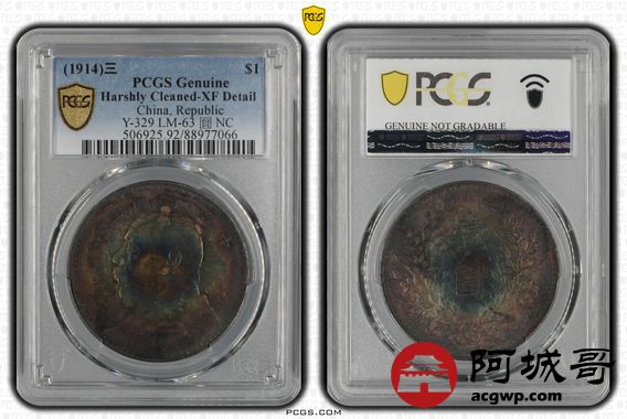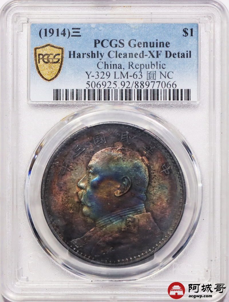 Lot:1 五彩包浆 三年大头壹圆 PCGS XF