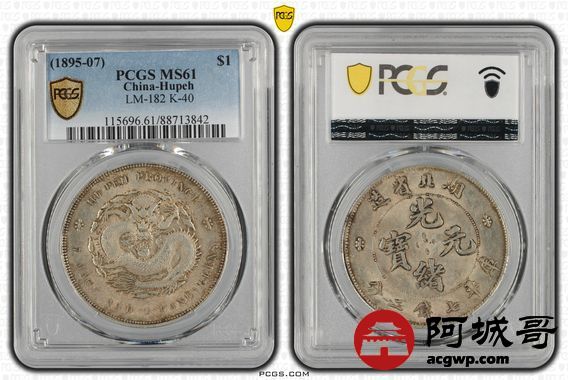 Lot:16 黄油原光 湖北光绪七钱二分 PCGS MS61