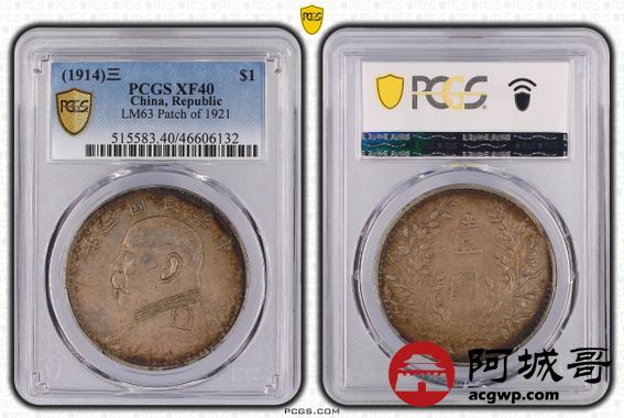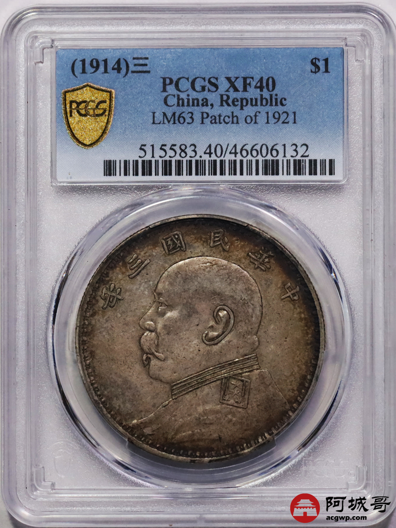 Lot:19 原味 五彩包浆 三年大耳壹圆 PCGS XF40