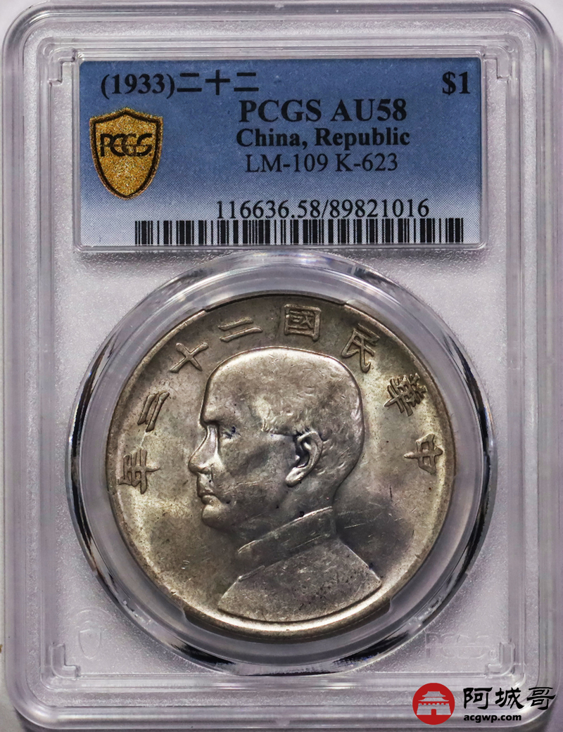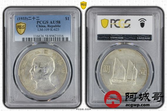Lot:21 原光状态 二十二年船洋壹圆 PCGS AU58