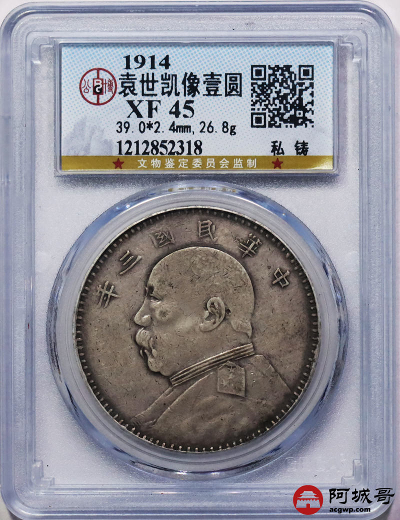 Lot:33 原味 三年大头壹圆 私铸版 公博 XF45