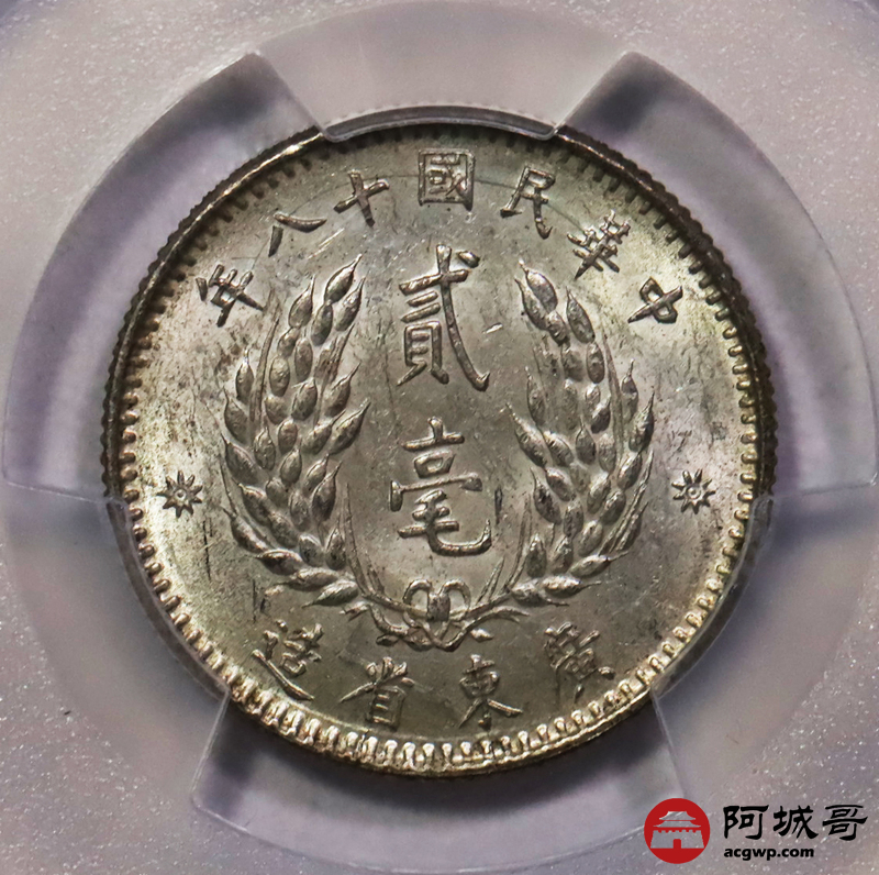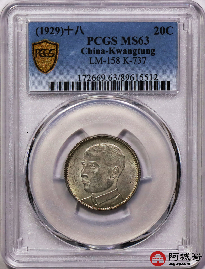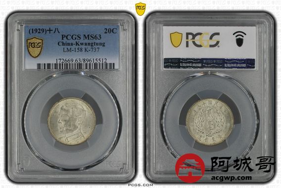 Lot:40 黄油原光 民国十八年广东孙像贰豪 PCGS MS63