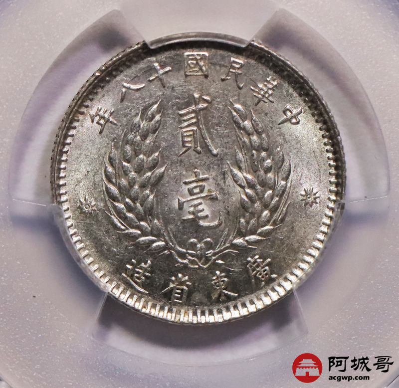 Lot:38 原光 民国十八年广东孙像贰豪 PCGS MS62