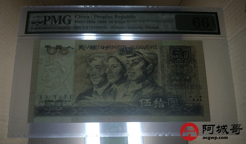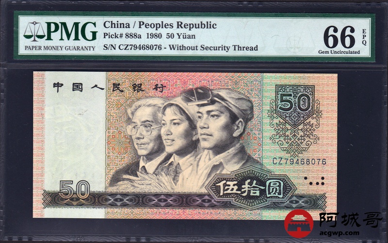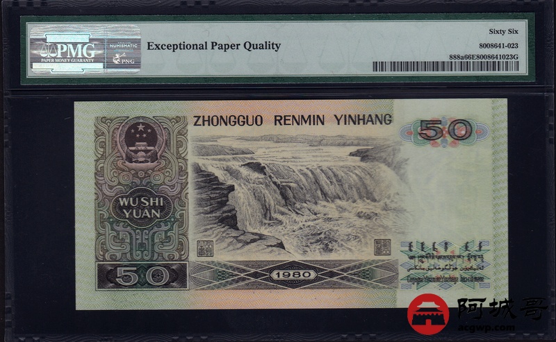 Lot:12 四版人民币 1980年 伍拾圆 四版币王 中国人民银行 PMG 66 EPQ