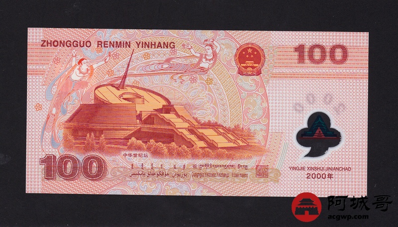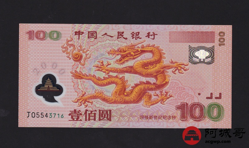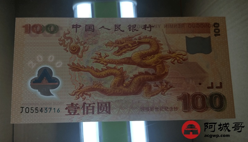 Lot:5 2000年 壹佰圆 千禧龙钞 原票全新 尾号16