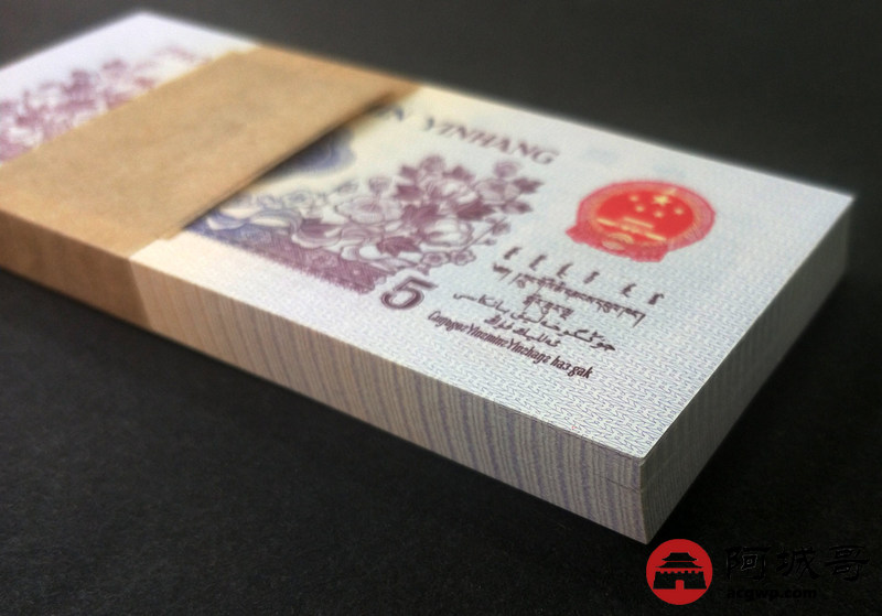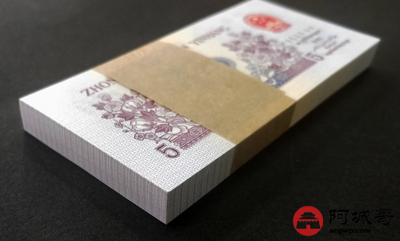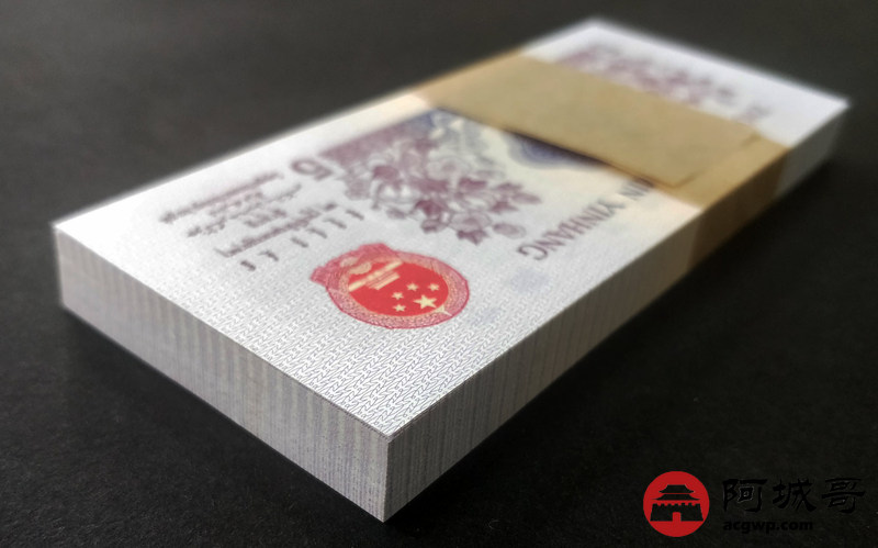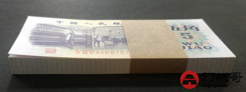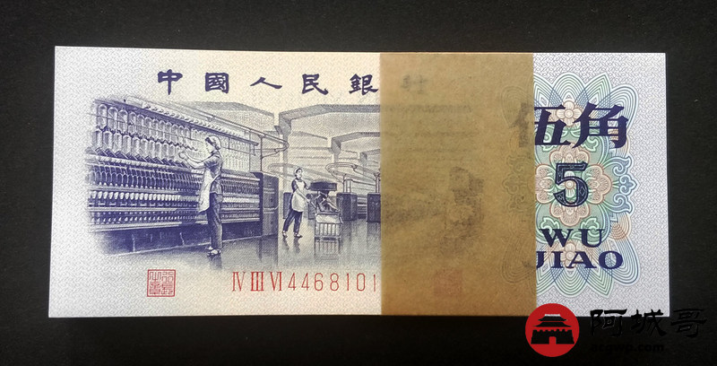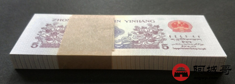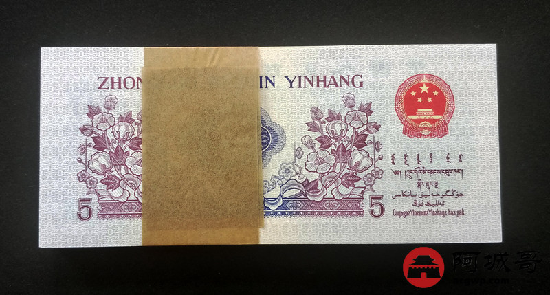 Lot:13 三版人民币 1972年 凸版五角 中国人民银行 一刀百联 捆拆绝中绝品相 灯下无斑