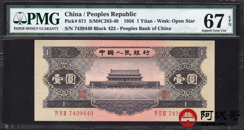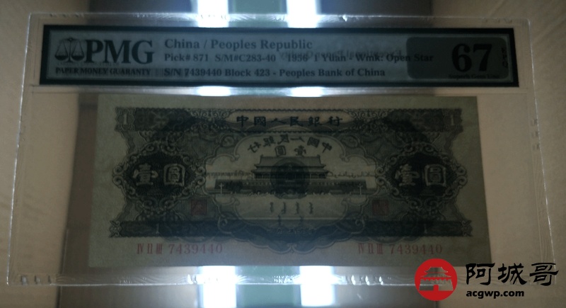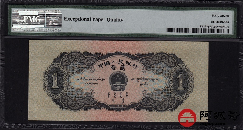 Lot:7 二版人民币 一九五三年 黑壹圆 中国人民银行 PMG 67 EPQ