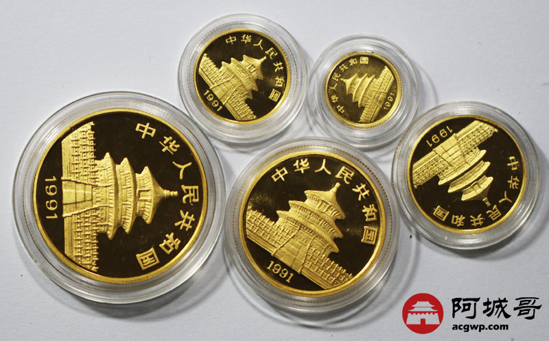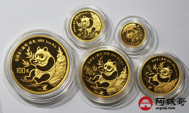 Lot:11 1991年熊猫金币100元 50元25元10元5元 5枚