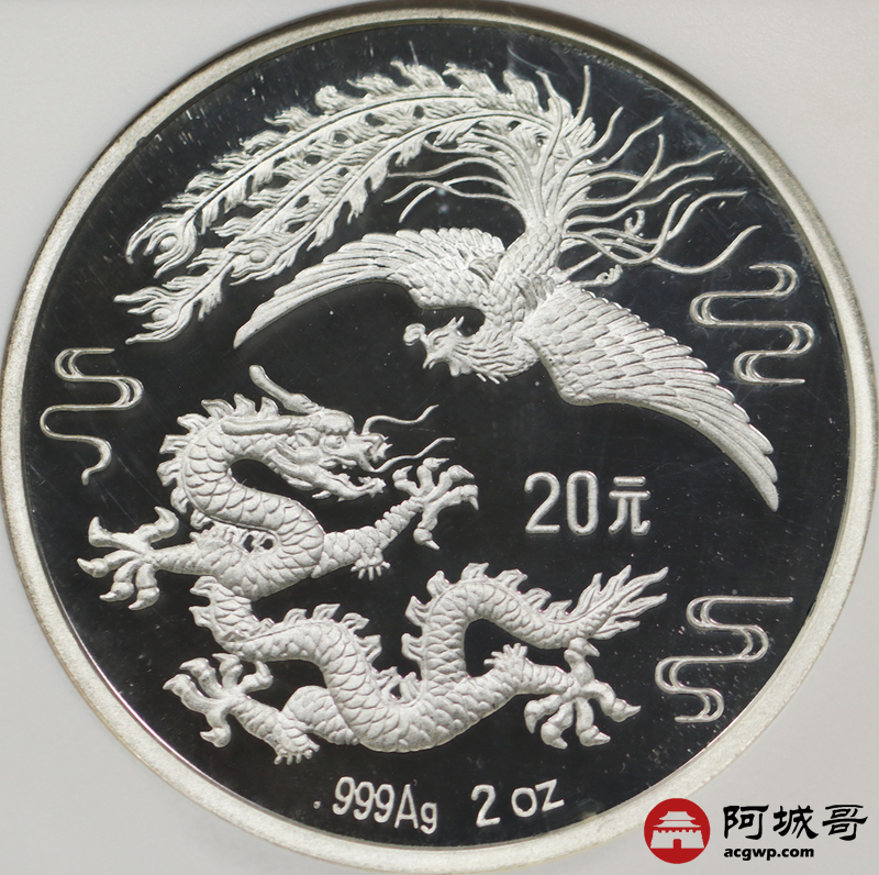 Lot:25 1990年2盎司龙凤加厚银币 NGC PF68