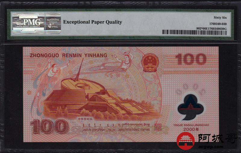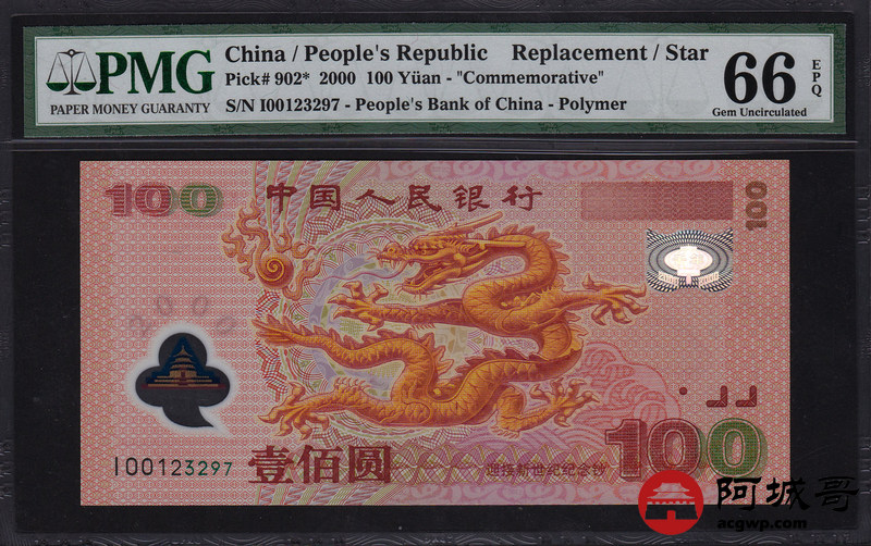 Lot:11 2000年 千禧龙钞 PMG 66 EPQ 稀少补号券 好号不带4