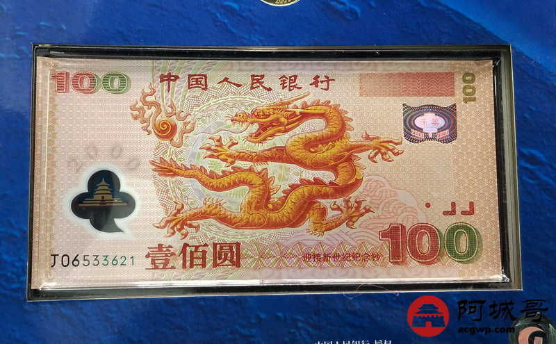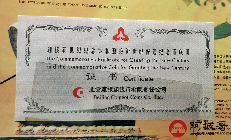 Lot:17 迎接新世纪纪念钞纪念币 带册带证书 好号无47 册子胶开了龙钞可以拿出来