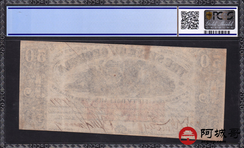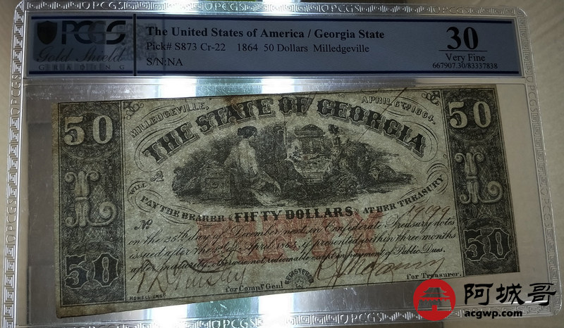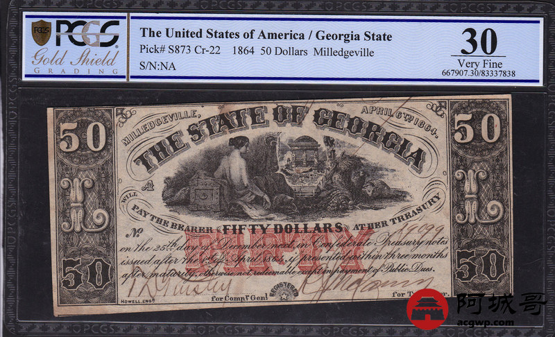 Lot:3 1864年 美元50元 PCGS 30 试样票 单面