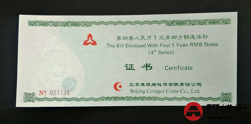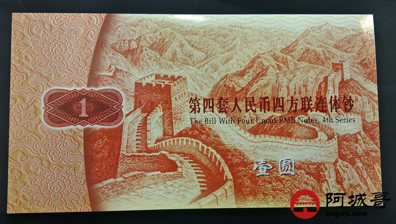 Lot:27 第四套人民币方联连体钞 壹圆 带册带证书
