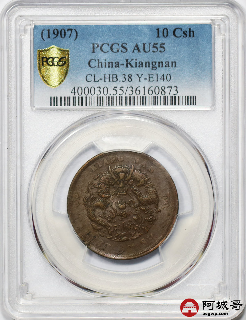 Lot:21 大清丁未铜币十文 PCGS AU55
