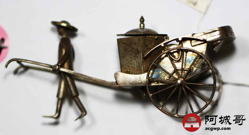 Lot:24 中国纯银黄包车调味盒:重量51.8克
