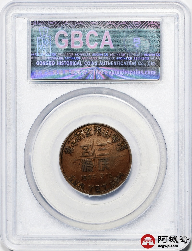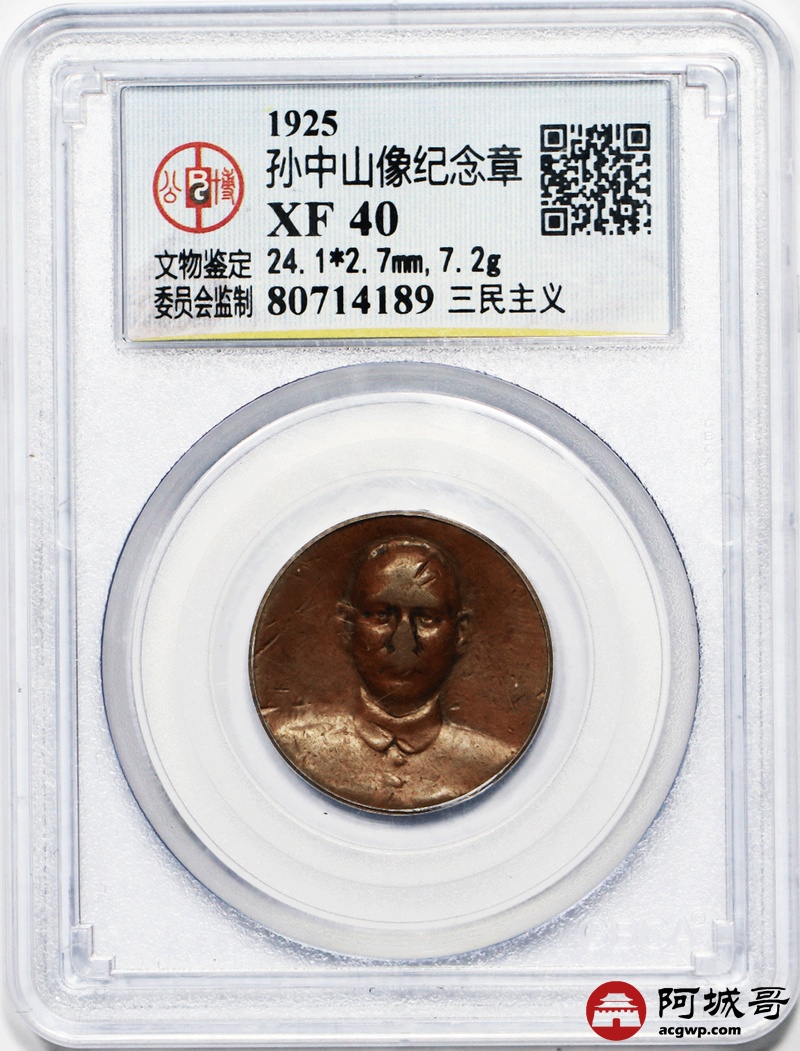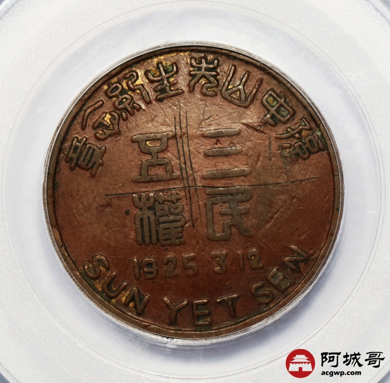 Lot:15 1925年孙中山像纪念章人像 高浮雕 背面三民五权 原味极少见公博 XF40