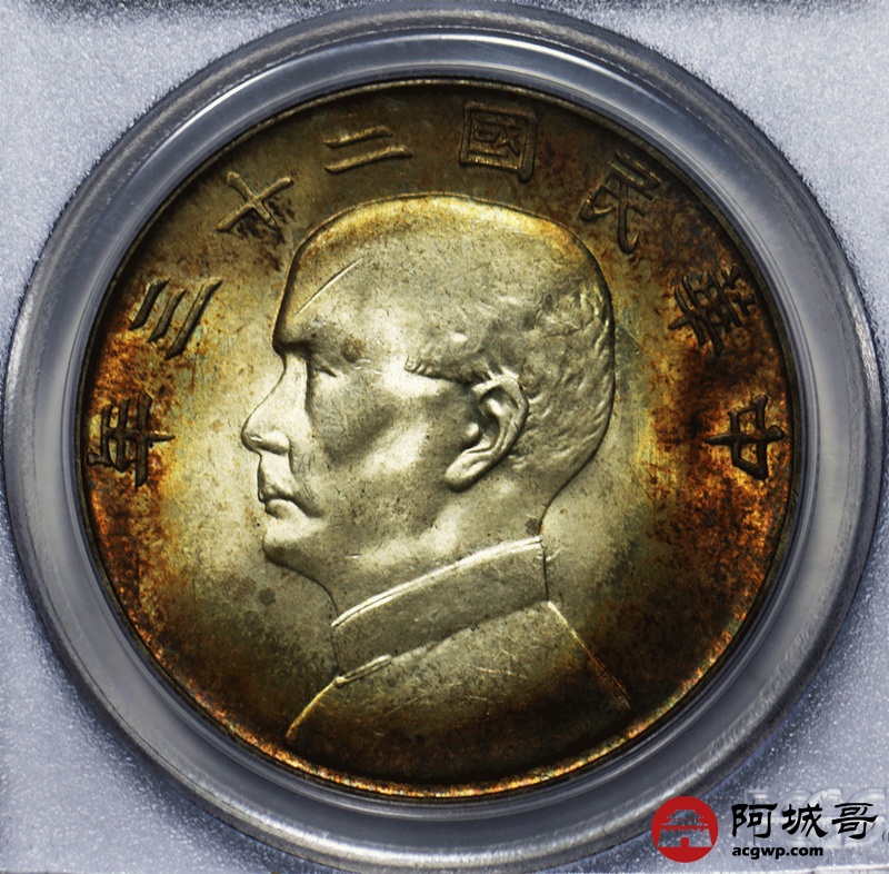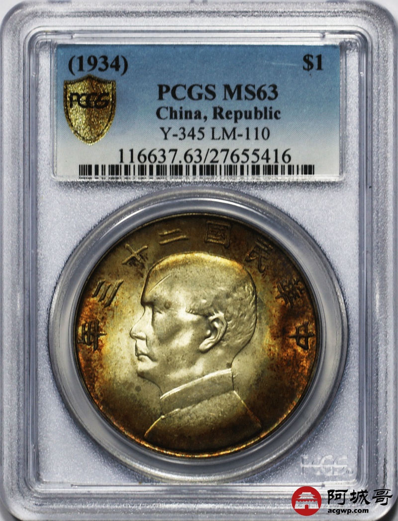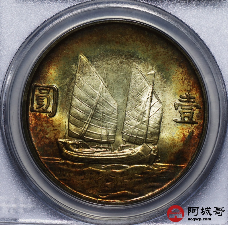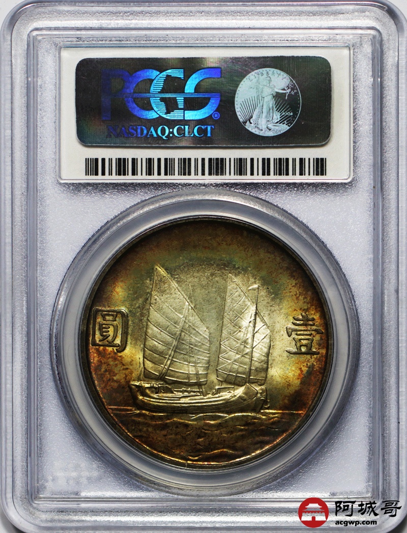 Lot:16 B民国二十三年船洋 发烧绚丽五彩包浆 PCGS MS63
