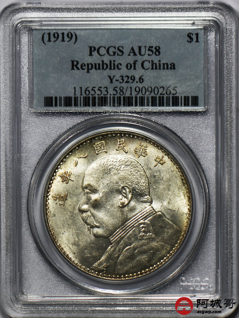 Lot:10 民国八年大头 壹圆 PCGS AU58