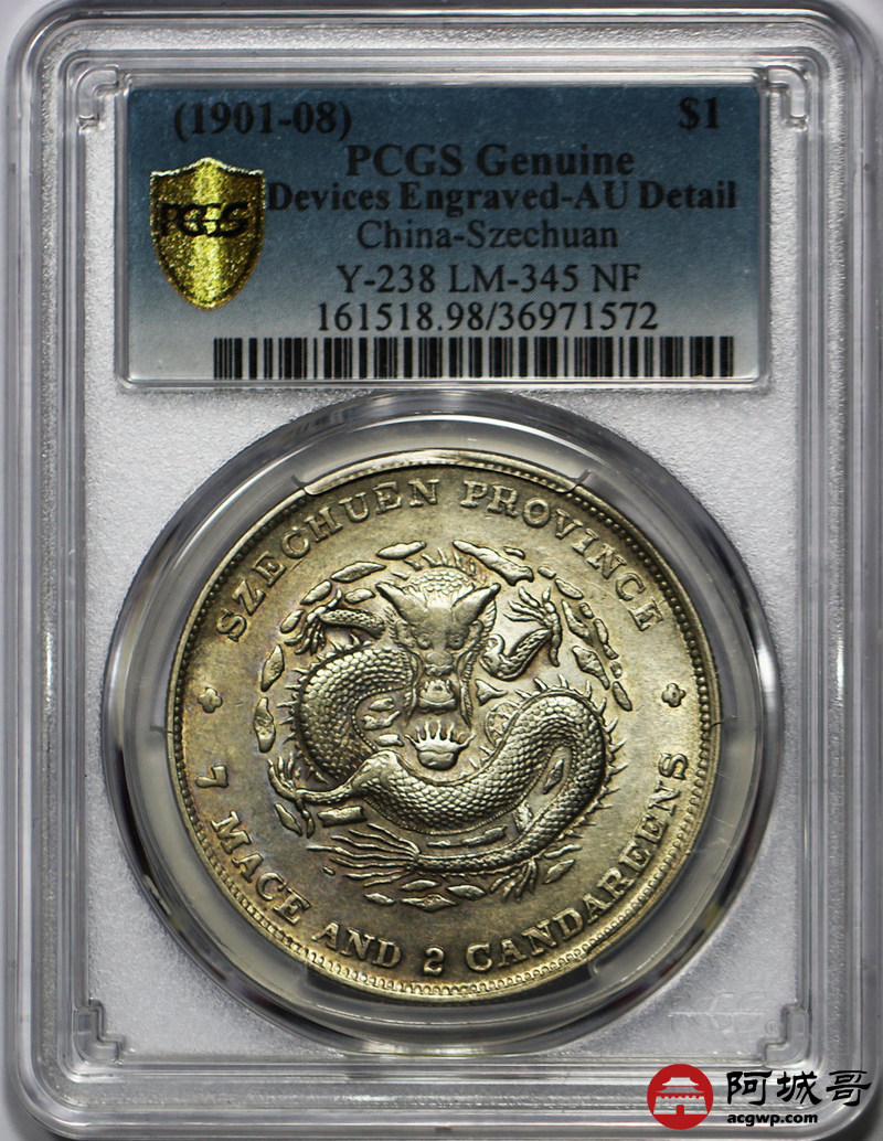Lot:17 a四川光绪七钱二分 全龙鳞带光 PCGS AU