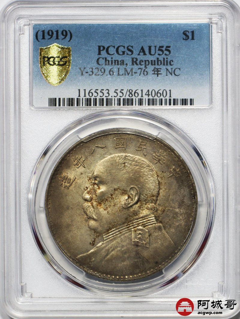 Lot:24 民国八年大头 原光 原味 PCGS AU55