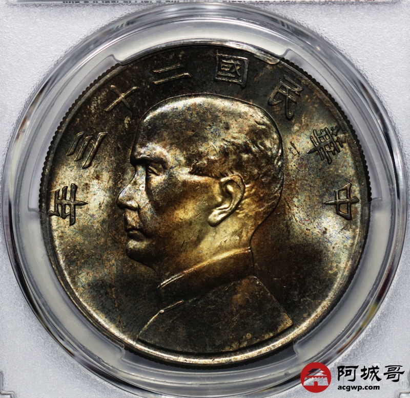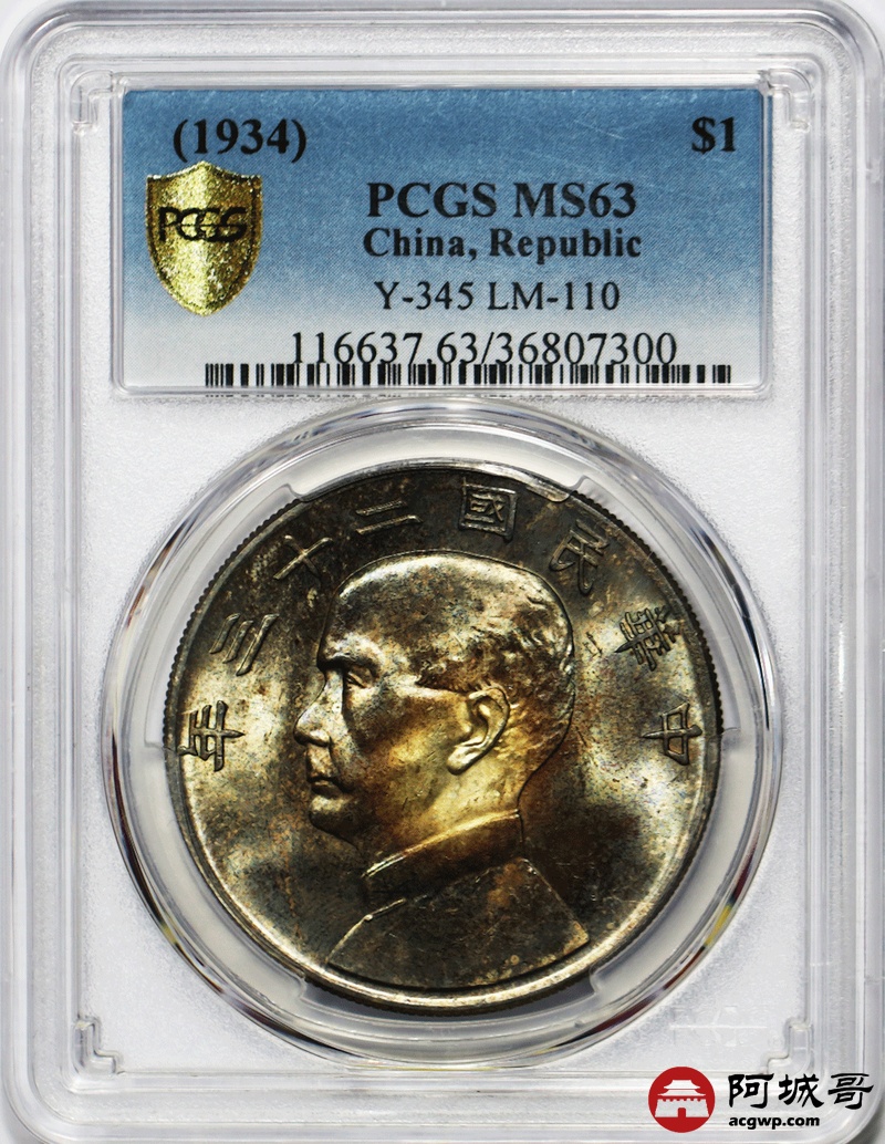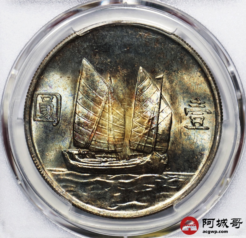 Lot:23 民国二十三年船洋 五彩 转光 非常 漂亮 PCGS MS63