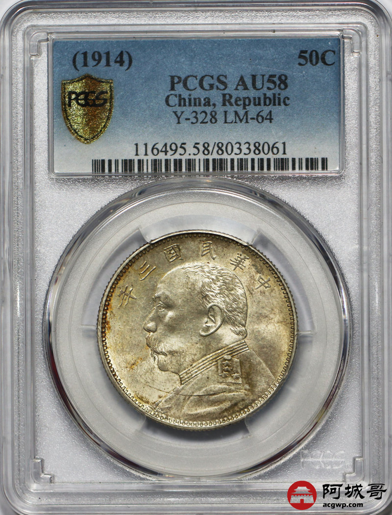 Lot:25 民国三年大头中元 原味 PCGS AU58