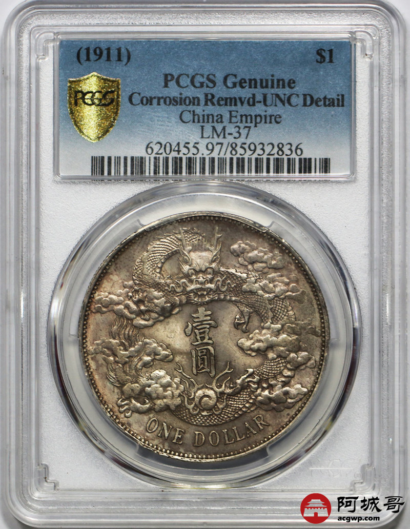 Lot:26 原光五彩老包浆 大清宣三壹圆 PCGS UNC